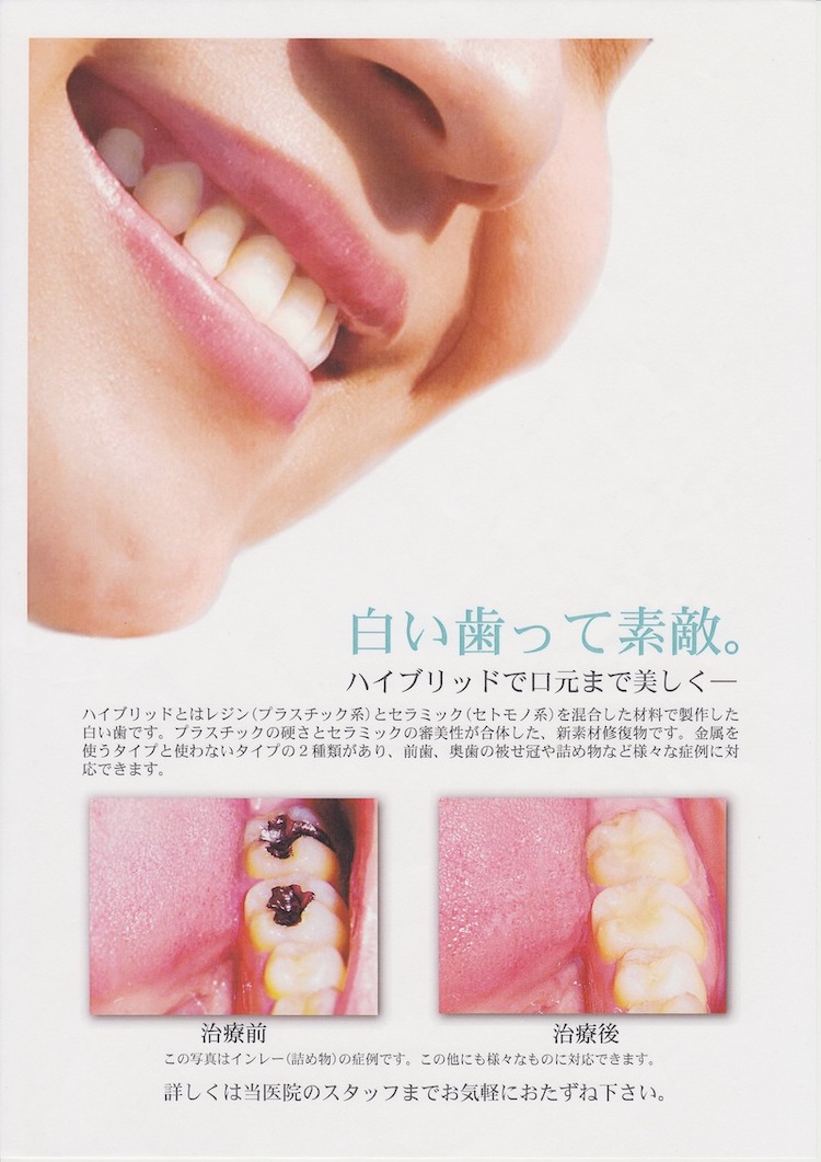さらに、CR=コンポジットレジンは虫歯治療のみでなく、欠けた歯の形態を修復、歯に盛り足していわゆるすきっ歯を修復、金属の部分をCR=コンポジットレジンに置き換えて金属アレルギーの予防や審美的な改善、など様々な用途で使用されます。